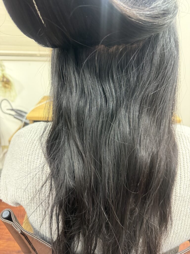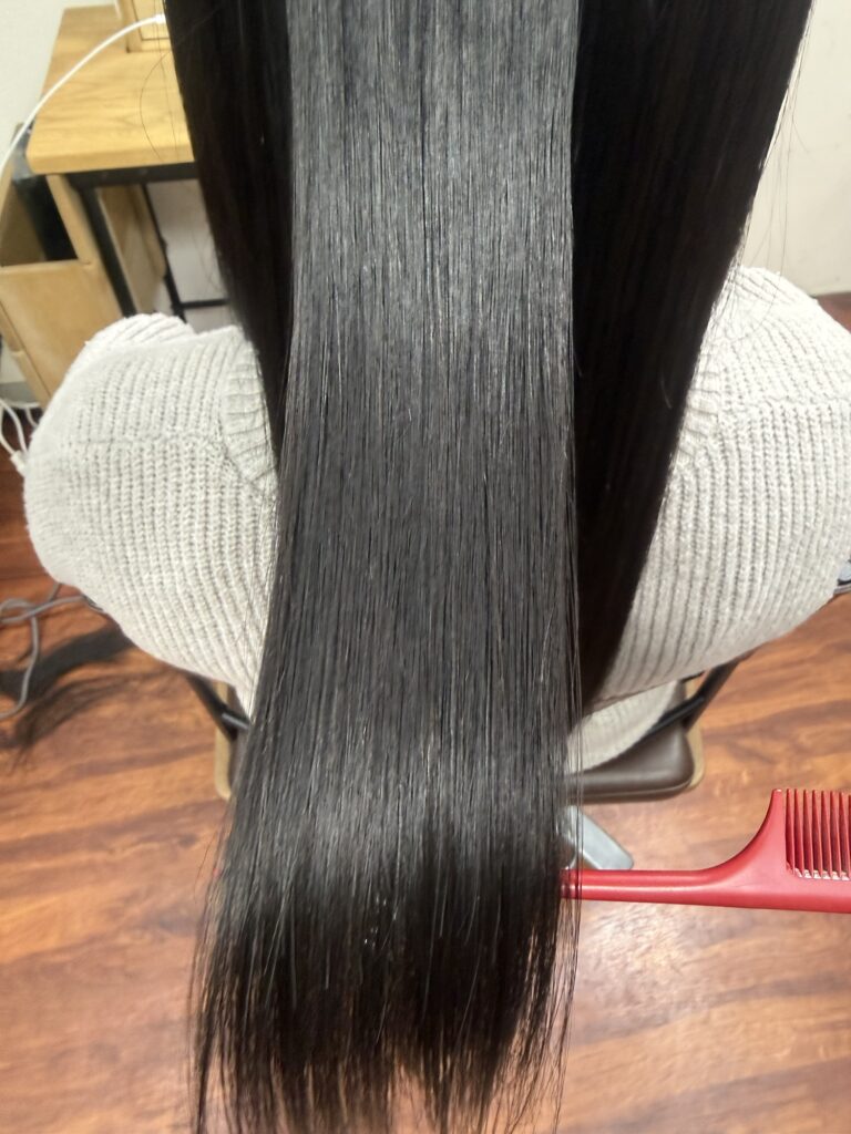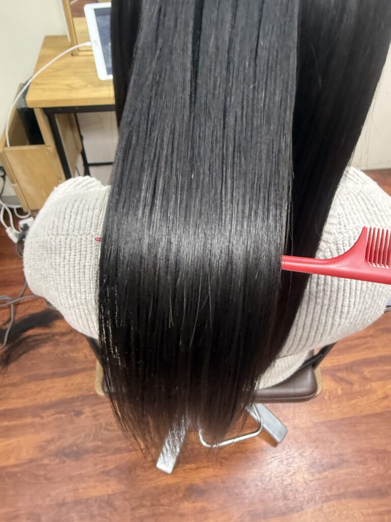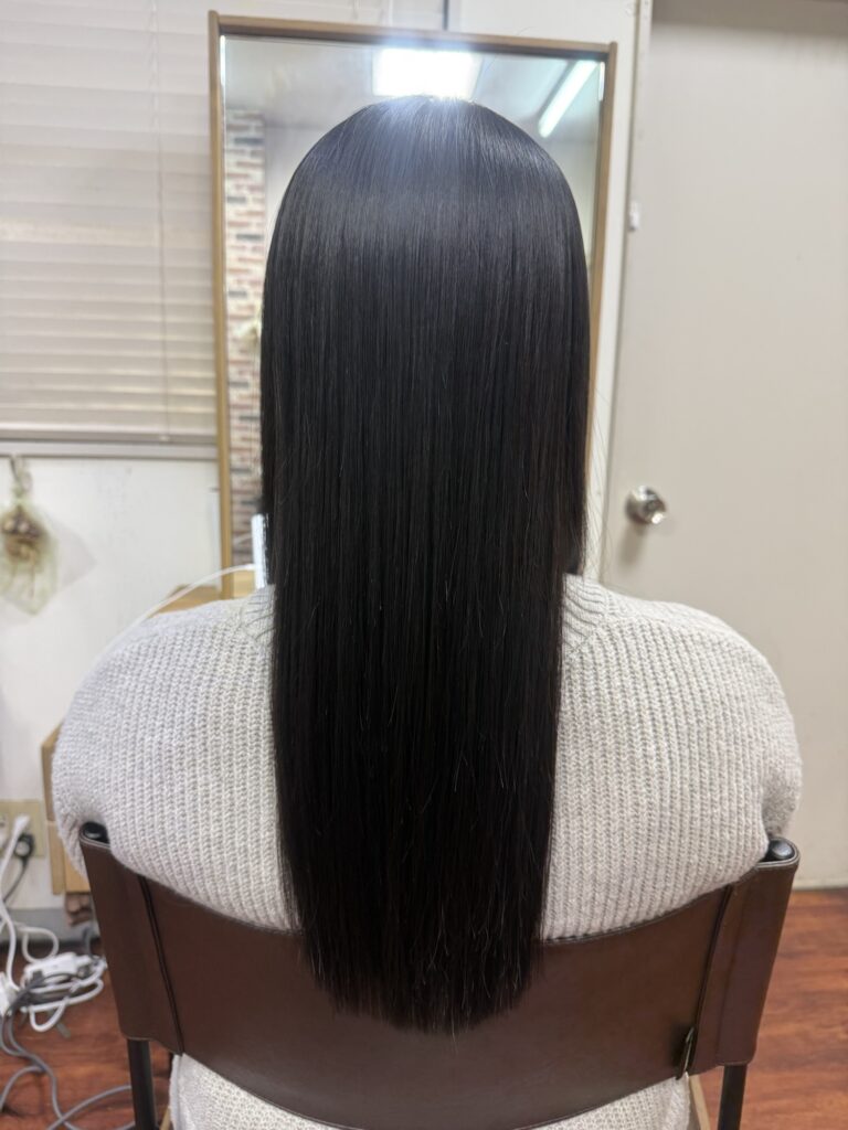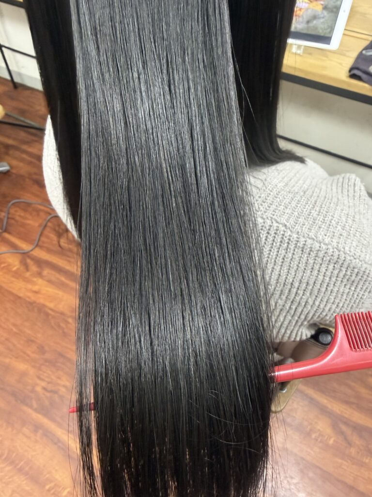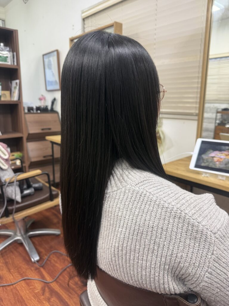 でダメージを抑えながら髪と頭皮に負担をかけないように自然だけどしっかりとクセを伸ばしています。