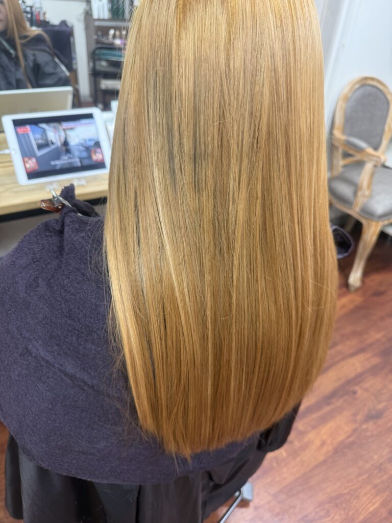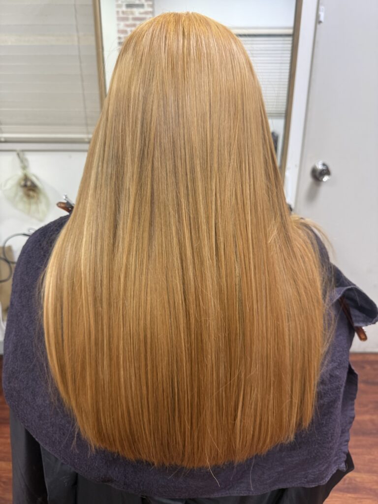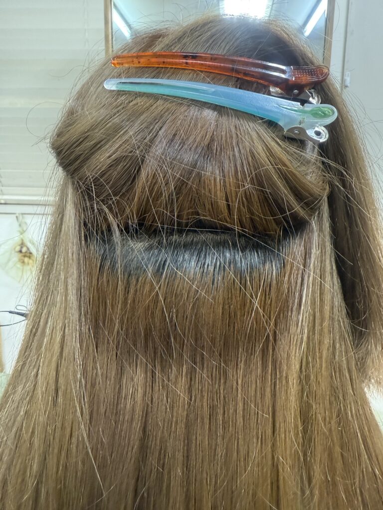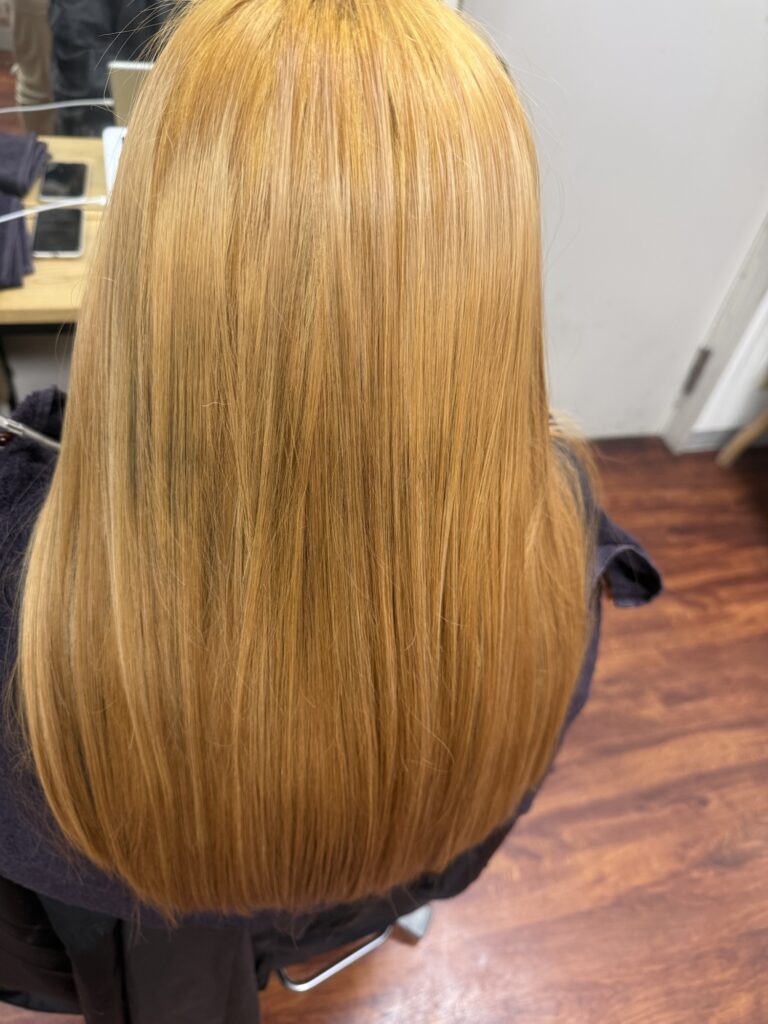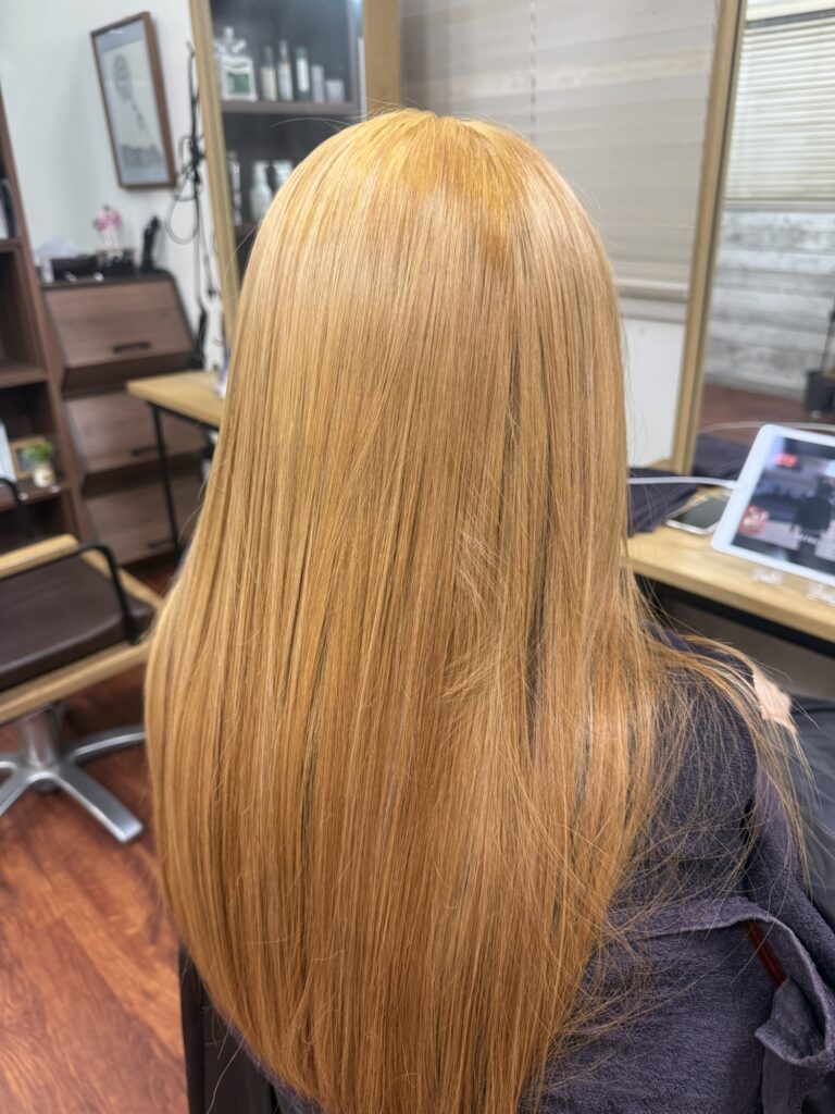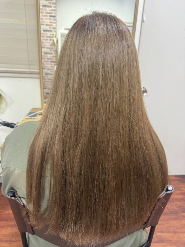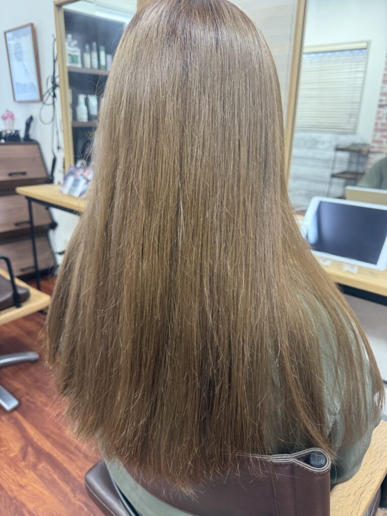 お伺いしたところ履歴がハイライトやバレイヤージュなどブリーチ履歴が10数回とダメージが心配でしたが髪質改善ストレートとケアブリーチと髪質改善カラーを同時にするという荒技を使いました。