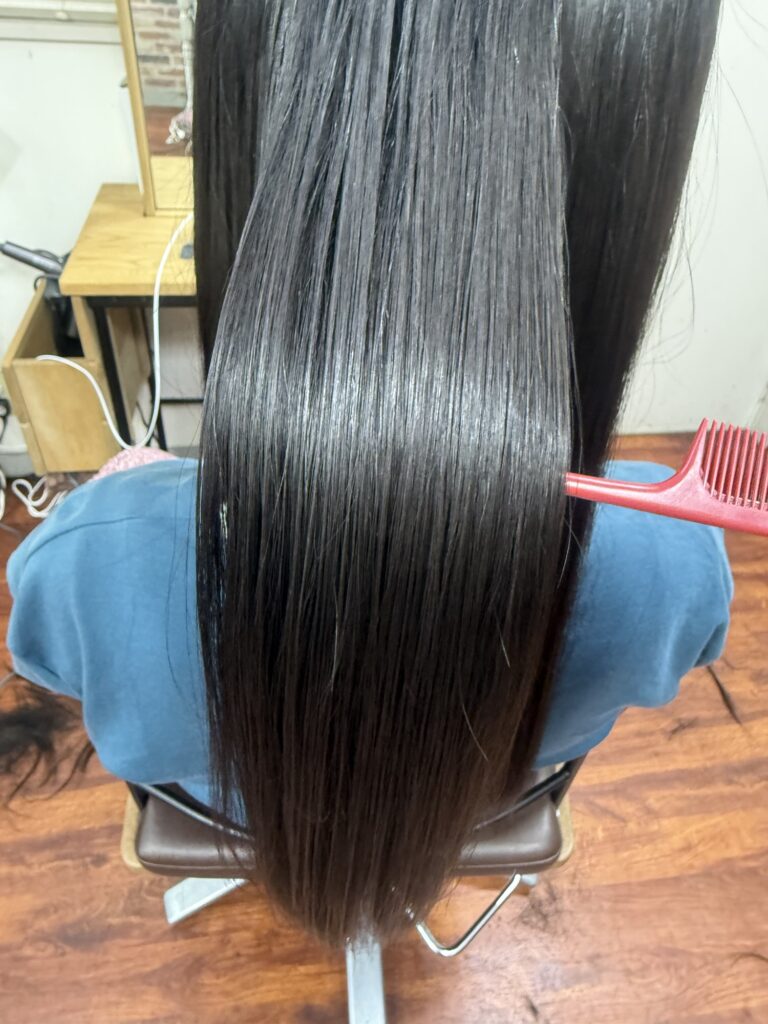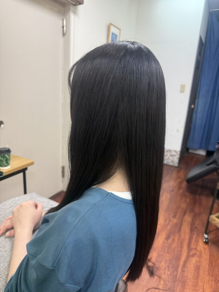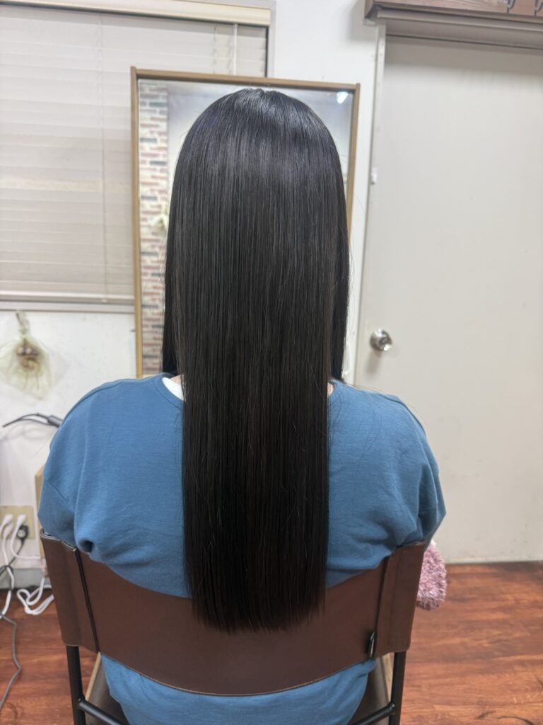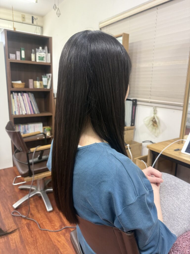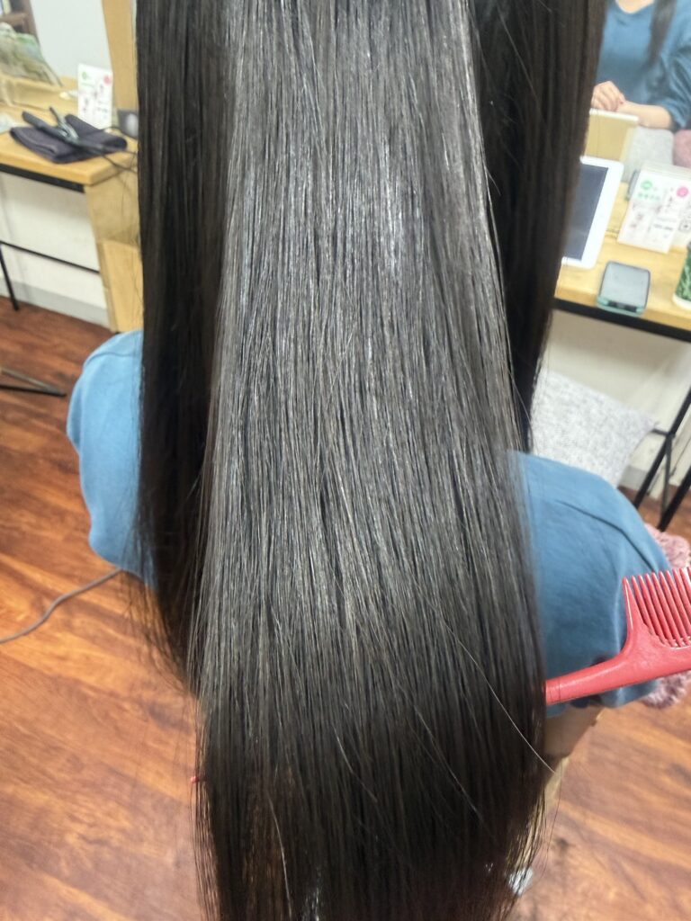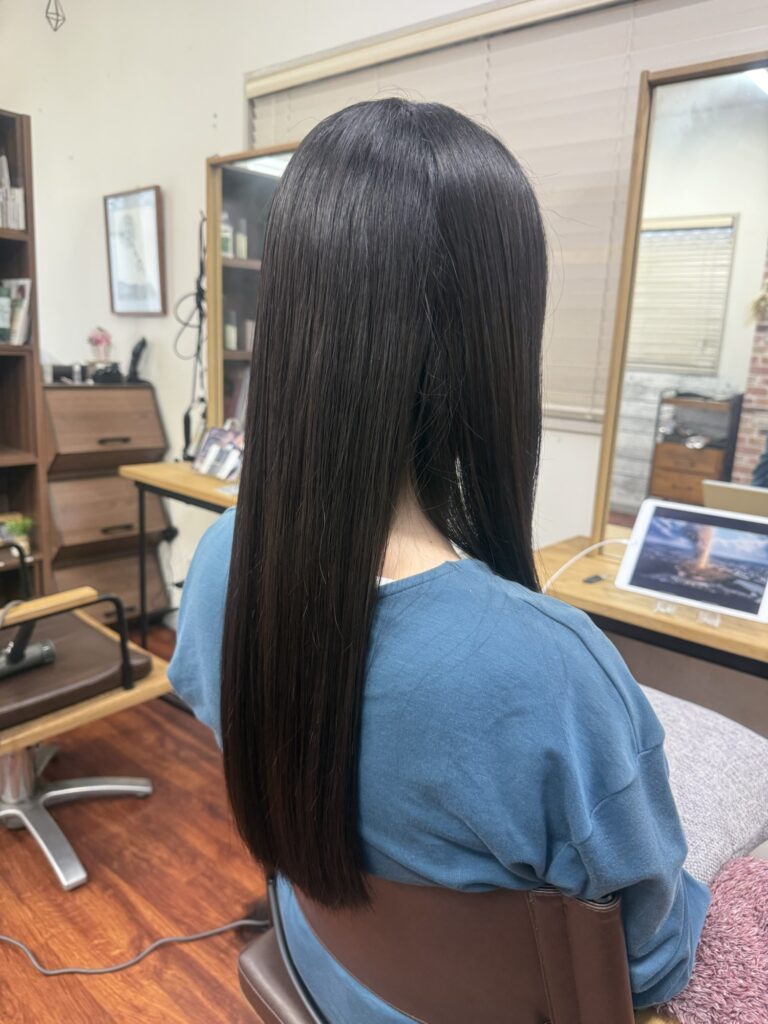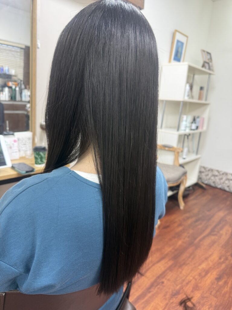 プレミアムタイプの髪質改善トリートメントで内部からケアをしサラサラツヤツヤです。
