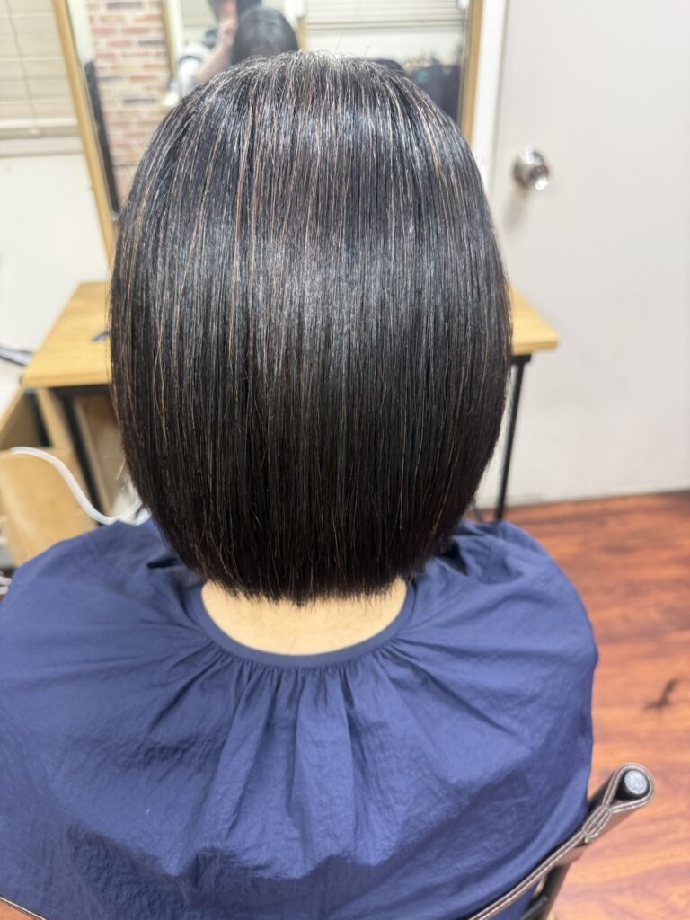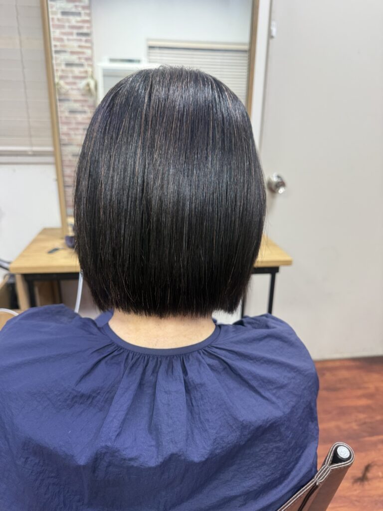 少し前下がりでカットして髪質改善トリートメントで