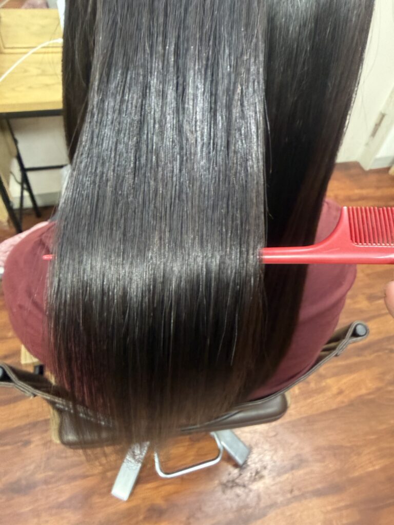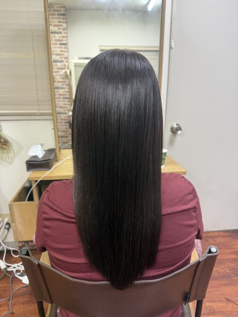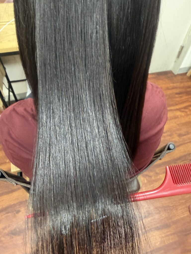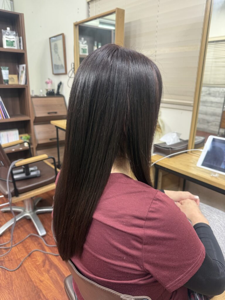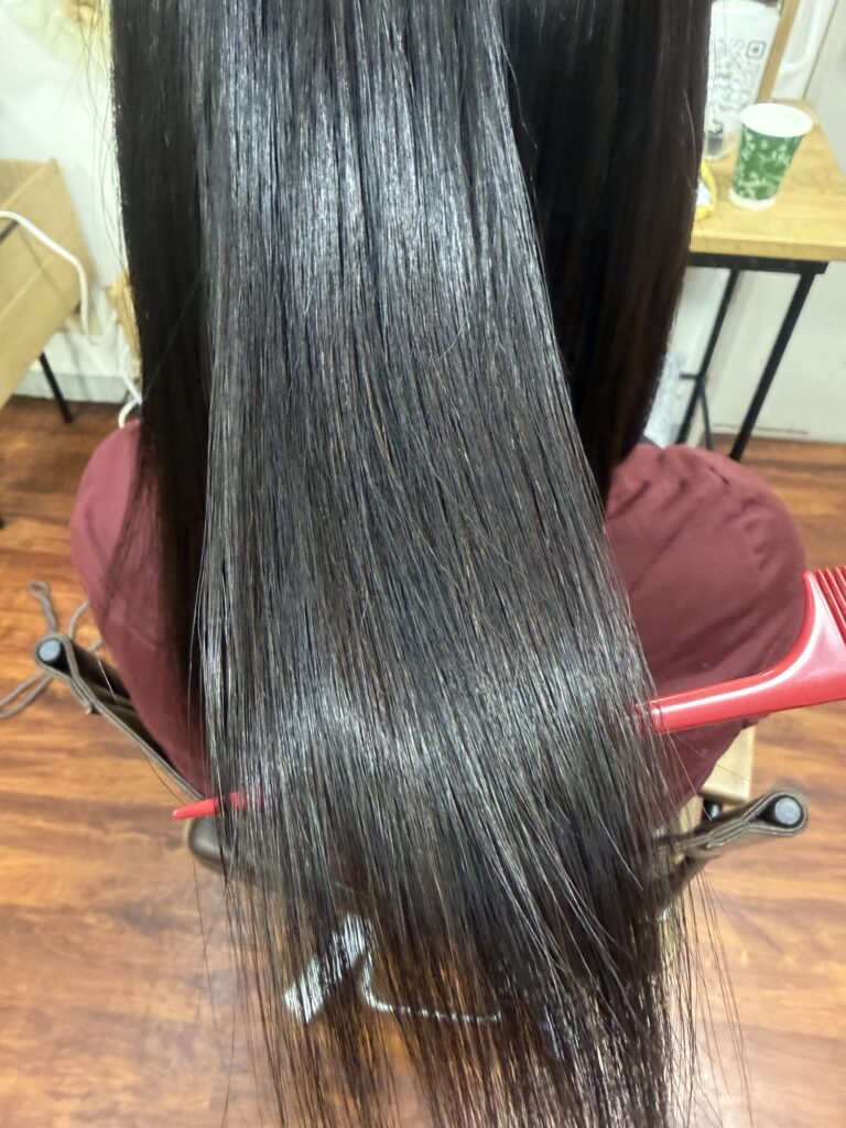 シャンプー後はデトックス、薬剤除去をして内部補修できるシステムトリートメントと追い髪質改善トリートメントをしてツヤツヤサラサラにしました。